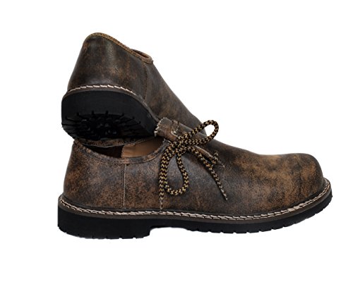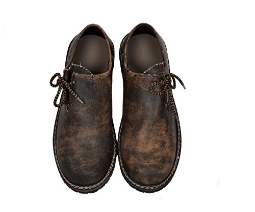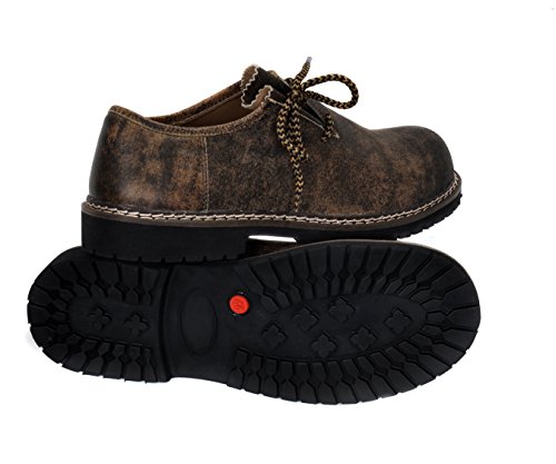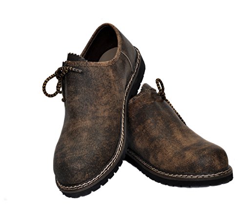 Hier stimmt das Preis/Leistungs-Verhältnis! Bei diesen originellen Seitenschnürern wurde robustes leder verarbeitet. Die Sohle ist mit doppelten Nähten am Oberschuh angebracht, was für eine lange Lebensdauer der schönen Trachtenschuhe sorgt. Die angeraute Oberfläche und die altbraune Farbe wirken sehr rustikal.Rutschfest sind sie auch. Gutes Produkt zu einem Vernünftigen Preis