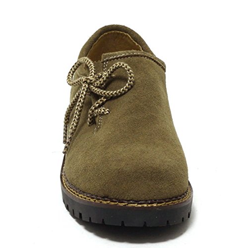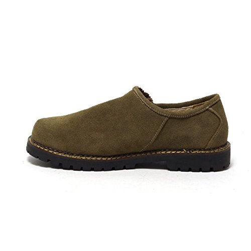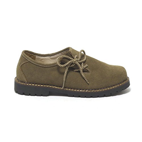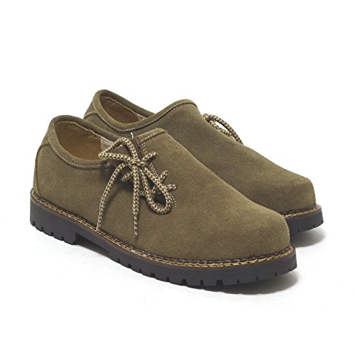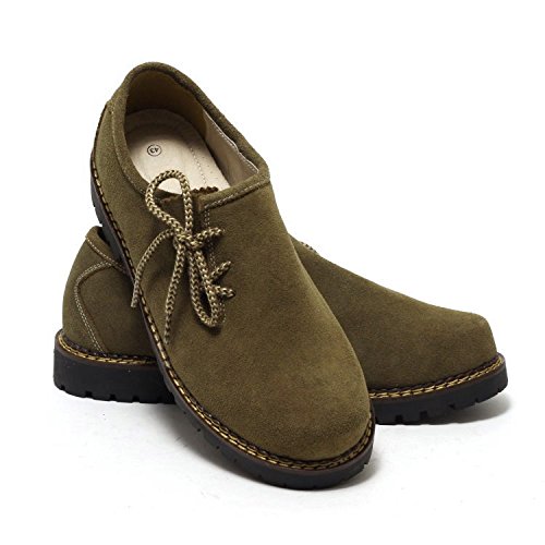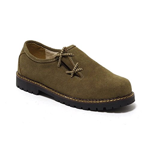 Haferlschuhe Trachtenschuhe Lederschuhe Schnürschuhe Gr. 45 Hochwertige Bayerische Trachtenschuhe (Haferlschuhe) aus echtem Leder. Mit traditioneller kräftiger Seitenschnürung. Das Obermaterial besteht aus weichem, aber kräftigem Rindveloursleder.Decksohle und Futter sind mit weichem echtem Glattleder ausgestattet. 100% echtes Leder! Die Laufsohle ist in typischer kräftig profilierter Form gearbeitet (Material:robustes Gummi). Besonders tragefreundliches gepolstertes Fußbett und bequeme Passform. Artikelmerkmale: Größe: 45 Farbe: Oliv Material: 100% echtes Leder Obermaterial: Rindveloursleder Decksohle + Futter: Glattleder kräftige Seitenschnürung Laufsohle: robustes Gummi gepolstertes Fußbett bequeme Passform UVP: 69,95 EUR