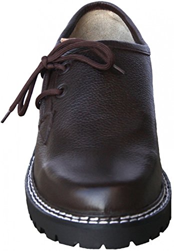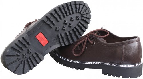 Bayerische Trachtenschuhe / Haferlschuhe aus echtem Rinds-Nappa-Glattleder (rauhe Struktur) Schuhe aus echtem feinstem Rindsleder, Innenfutter ist auch aus leder Starkes Profil Schuhsohle aus echtem Gummi Hergestellt in Handarbeit Absoluter Komfort beim Tragen durch weiches Fußbett Schlichte Schuhe, ohne Stickerei, elegant Nähte an den Sohlen sind zwar nicht so gut sichtbar, da Garnfarbe ähnlich der Sohle gewählt, aber wurden von Hand gearbeitet, keine Imitatsnähnte! Hinweis: Zunge im Schuh wurde absichtlich ganz seitlich angeschnitten, um sich gut an den Fuß bei geschnürtem Schuh zu schmiegen, dies ist so gewollt und nicht eingerissen. Schuhe werden seitlich geschnürt Lieferung erfolgt im edlen Originalkarton Entworfen und hergestellt von German Wear