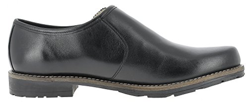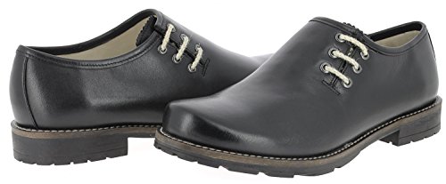 Trachtenschuh von HirschkugelDer zeitlose Haferlschuh aus dem Hause Hirschkogel ist ein Blickfang, der zu einem traditionellen Outfit passt oder als Akzent zu einem trendigen Outfit getragen werden kann. Hochwertiges Leder trifft bei dem Trachtenschuh auf perfekte Passform und gesellt sich zu einem ansprechenden klassischen Design.Features: Qualität trifft Design Diese Trachtenschuhe besitzen eine seitliche Schnürung, die sich farblich hell vom schwarzen Haferlschuh absetzt und dafür sorgt, dass sich das Modell individuell an den Fuß anpassen lässt. Das butterweiche Leder sorgt dafür, dass diese Haferlschuhe bequem sitzen und komfortabel zu tragen sind. Die Laufsohle besteht aus abriebfestem Gummi, der für einen komfortablen und weichen Auftritt sorgt. Um einen besonders weichen und komfortablen Auftritt zu ermöglichen, ist unterhalb der Laufsohle ein spezieller Schaumstoff eingearbeitet, der für ein Laufgefühl wie auf Wolken sorgt. Die Innensohle und das Futter der Haferlschuhe sind ebenfalls aus hochwertigem Leder gearbeitet. Durch die runde Fußspitze haben die Zehen ausreichend Platz.Traditionelles Schuhmodell mit modernem CharmeDie typisch seitliche Schnürung trifft auf eine Gummiprofilsohle und ein etwas hoch gezogenes Fersenteil. Diese traditionellen Haferlschuhe überzeugen als Klassiker und werten jedes Trachtenoutfit auf. Bester Tragekomfort trifft bei diesem schwarzen Trachtenschuh auf hochwertige Sohlen und qualitativ einwandfreie Verarbeitung. Das weiche Glattleder ist robust und selbst nach zahlreichen Einsätzen behalten diese Haferlschuhe ihre Passform. Das feine Schuhwerk sorgt dafür, dass langes Stehen beim Feiern oder bequemes Laufen kein Problem werden. Der edle Schnürschuh passt perfekt zur Lederhose und wirkt exklusiv. Diese Haferlschuhe aus Leder sind ein Klassiker, der durch Akzente überzeugt. Dieses Modell aus Leder besticht durch Design und ist in den Größen 40-45 EU erhältlich.
