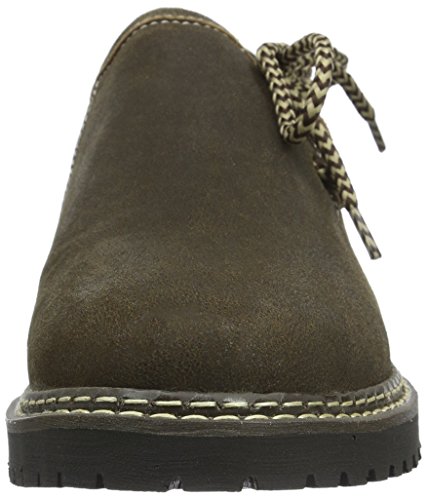 Mit diesen Haferlschuhen aus echtem Ziegenleder sind Sie bestens gerüstet zu Oktoberfest oder Kirchweih! Die Trachtenschuhe sind dunkelbraun und aus gewachsten Wildleder. Neben der hellen Innensohle, welche durch das tolle Fußbett besonders bequem ist, ist die robuste Gummisohle auch ein Garant für einen sicheren Tritt. Der rustikal verarbeiteter Herrenschuh mit der traditionellen Seitenschnürung und den gezackten Lederlaschen ist ein echter Hingucker. Der Marken Schuh ist vielseitig kombinierbar zur Lederhose oder Jeans. Hochwertige Qualität und Verarbeitung zeichnen diese Trachtenschuhe aus. Ein Muss für jeden Trachtenfreund, aber auch für die Freizeit ein bequemer Schuh. Erfahrungsgemäß fallen diese Schuhe eine Größe kleiner aus, nehmen Sie im bitte gern die nächste Größe! Lieferumfang: 1 Paar Haferlschuhe Material: Ziegenleder / Gummisohle Farbe: Dunkelbraun